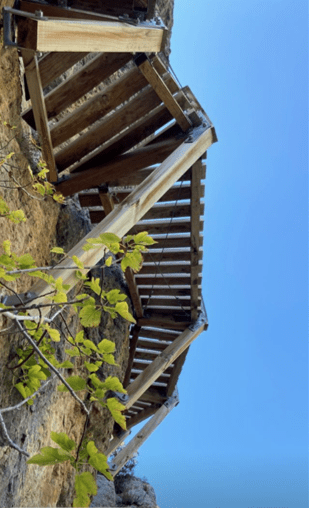 En esta caminata pasas por dos puentes colgantes en los que cruzas el mar y, una vez cruzas el segundo puente después de una subida intensa llegas hasta las famosas escaleras que están pegadas a la montaña. Un placer para la vista llegar hasta ahí arriba y poder bajarlas y subirlas, además de una gran experiencia.