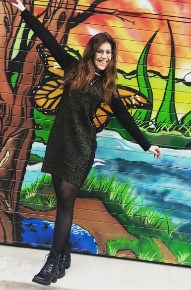 El primer outfit es un vestido con estampado animal color caqui con diferentes detalles en el lateral y la parte del cuello en blanco y dorado. En este caso llevo un colgante que se destaca perfectamente debido al estampado, unos botines «Xti» de color negro y unas gafas «multiópticas» con el detalle del borde dorado super a conjunto con los detalles del look.