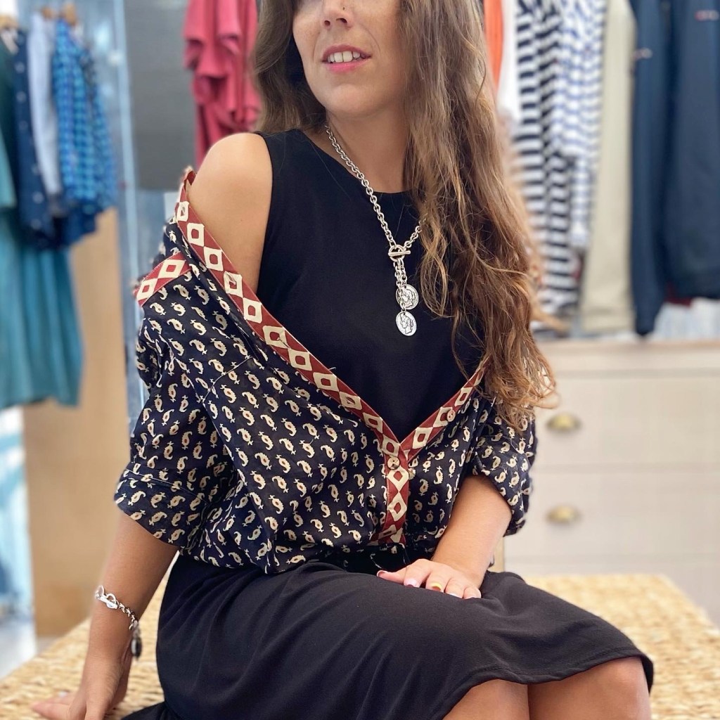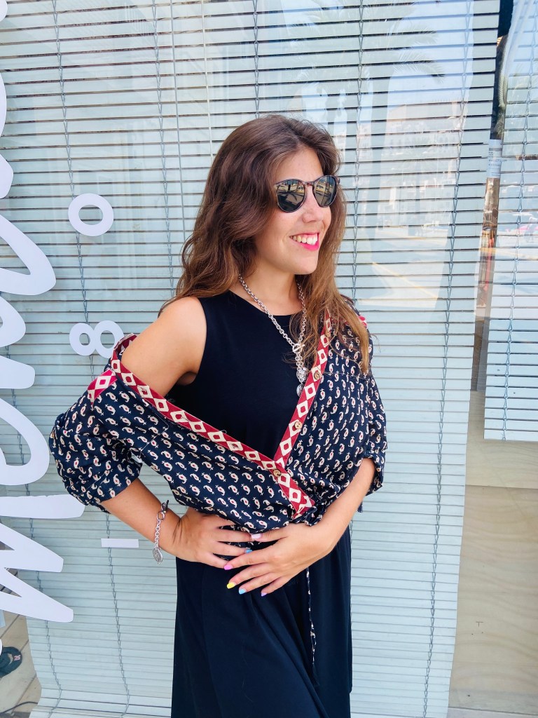 Una blusa que resguarde de la subida de temperatura de las mañanas y la noche. Los complementos usados siguen siendo «Ciclón Jewlery»