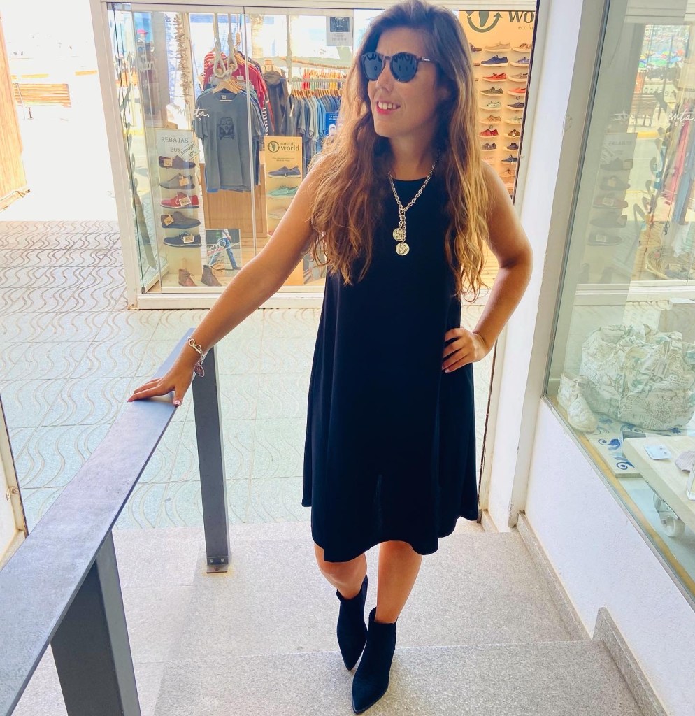 Seguimos con otro conjunto compuesto por un vestido de punto de color negro, total fondo de armario, con unas botas camperas y unas gafas «Parafina» (marca de gafas de sol ecológicas).